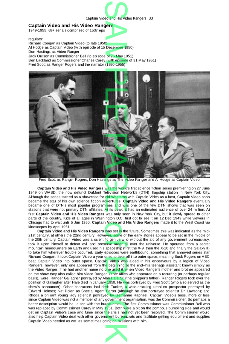 I have also added five series that I did not know about when the first book was published. One from Canada the rest from the United States. One of them was one that was never even broadcast. I also added The Man and the Challenge, a borderline genre programme that I had been aware of. Several people queried me as to why it was not included in the first book. As all of the information on the programme was easily obtainable I included it here.