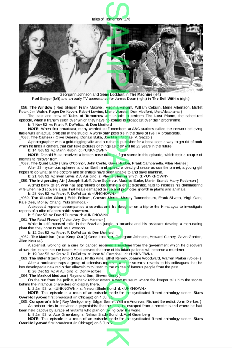 There are also over a dozen British serials from the 1950s, as well as one from the United States. The definition of serial here is a story that is told over multiple episodes. Serials were much more prevalent in the UK then they were in the USA. These were not included in the first book as I was not including serials in the scope of the book when it first came out.